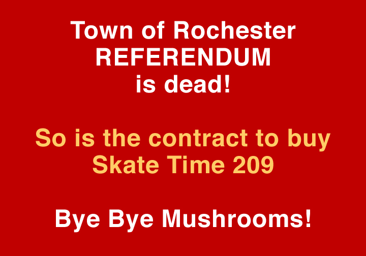 In a previous post, What a coincidence, I pointed out that a food pantry was scheduled to pop-up in Skate Time’s parking lot on December 7, 2021 – two hours before the beginning of a referendum in which Town of Rochester voters may have decided to buy or not to buy… Skate Time 209!