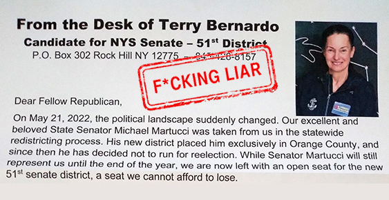 KINGSTON, N.Y. — Former Ulster County Legislature Chairwoman Terry Bernardo has filed petitions to take on Republican incumbent Sen. Peter Oberacker for the GOP line in the race for the 51st state Senate District.