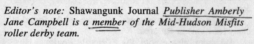 Despite the cool roller derby names, the Mid-Hudson Misfits was formed with a mission, said Jane Bondage (a/k/a Amberly Jane Campbell, Publisher of Shawangunk Journal): to offer “a sort of safe haven for all women of all different backgrounds and walks of life.”