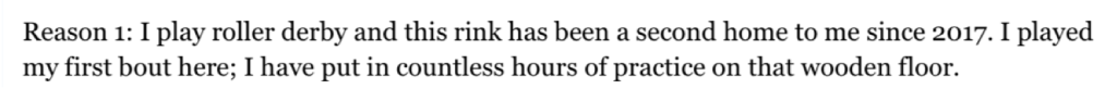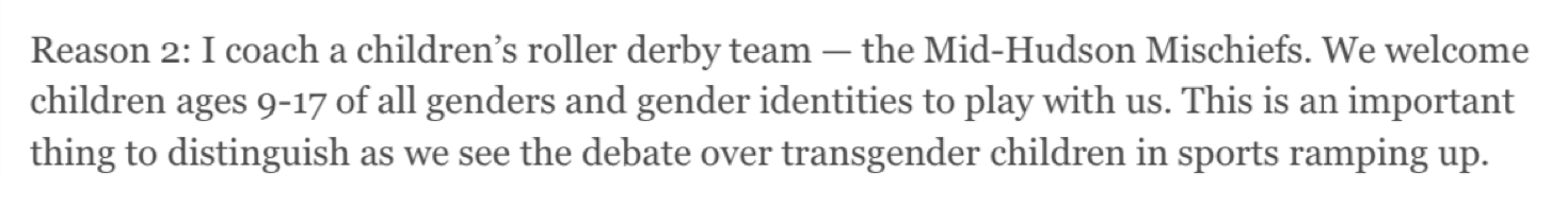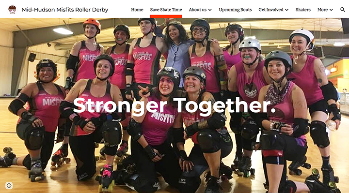 “Our league is made up of a diverse group of women and non-binary people from several counties in the Mid-Hudson Valley region. We come from different backgrounds and different occupations, but we are united in our love of flat track roller derby. We are strong, athletic individuals. We are community focused. We are anything but cookie cutter and we are proud of it. We are the Mid-Hudson Misfits!”